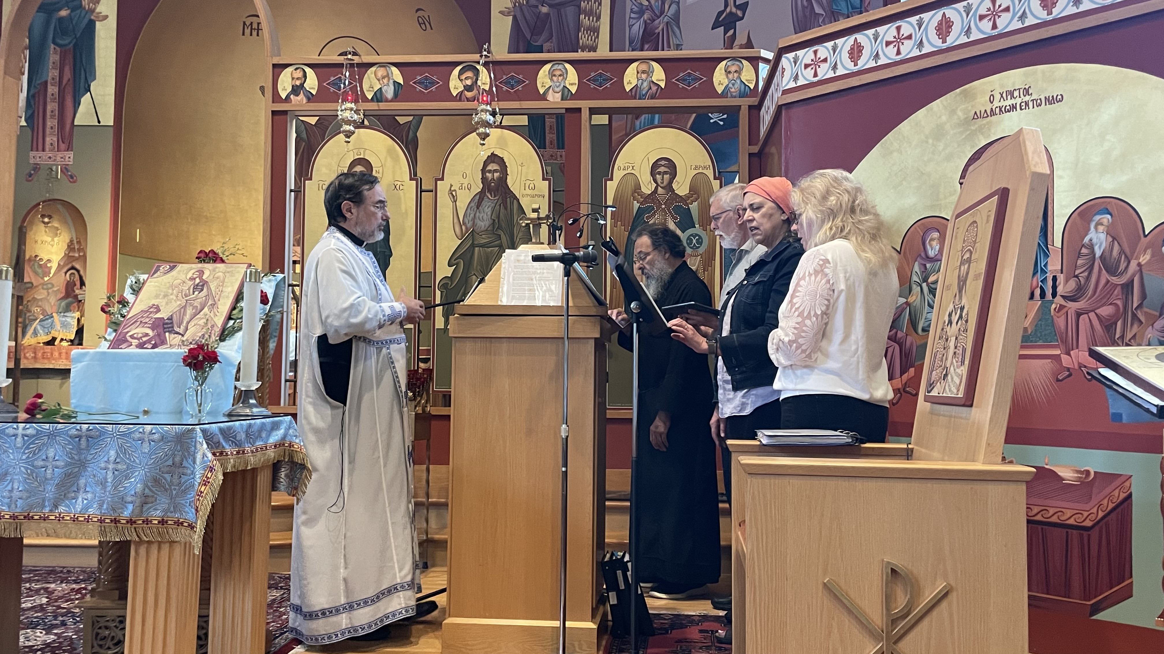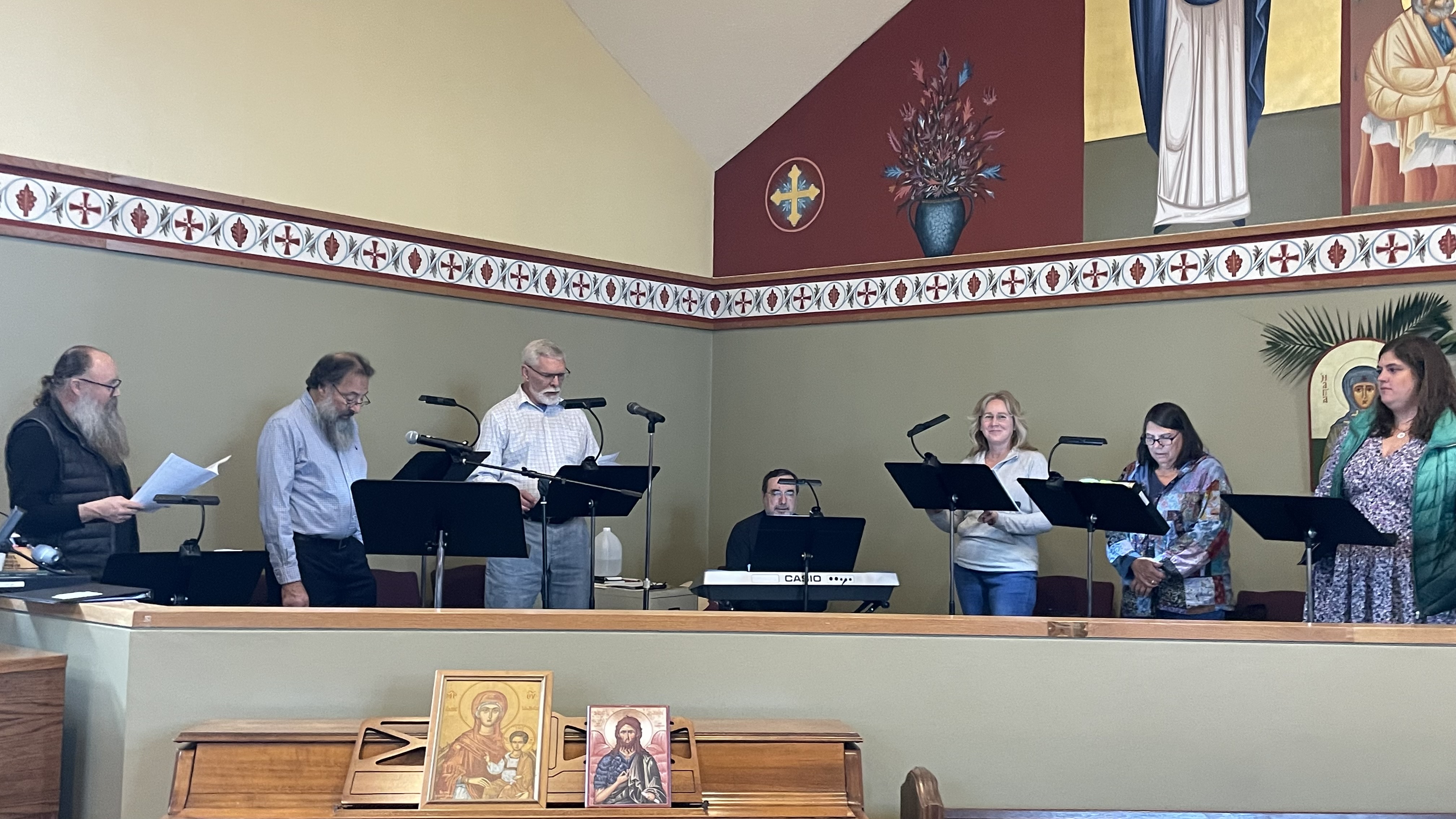 The choir leads the congregation in the singing of hymns and responses to worship during the Divine Liturgy and many other worship services during the year. Our vision is to be a parish where everyone actively participates in worship through singing. None of our members are professional musicians, but every choir member is expected to sing on pitch, work within a section of the choir to produce a refined vocal sound, and to blend our voices in singing most of our hymns in four parts.